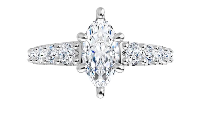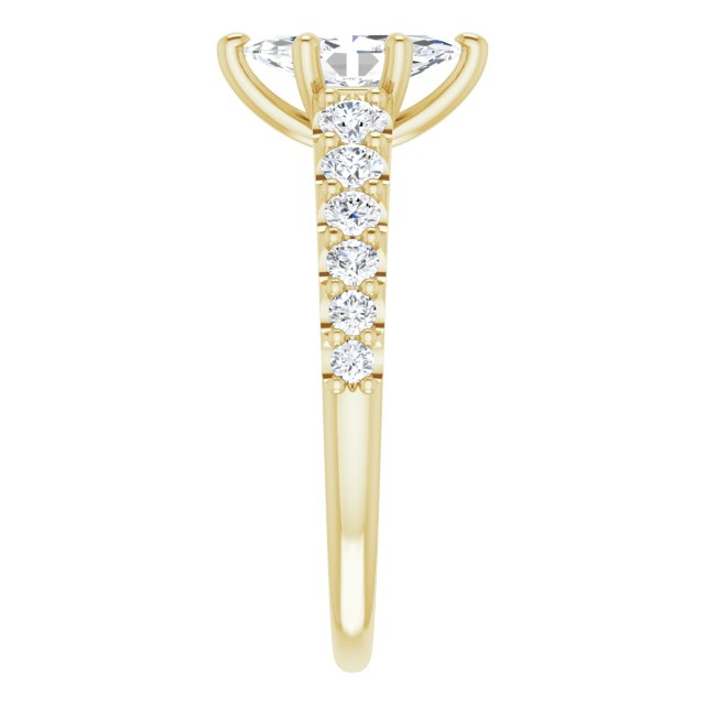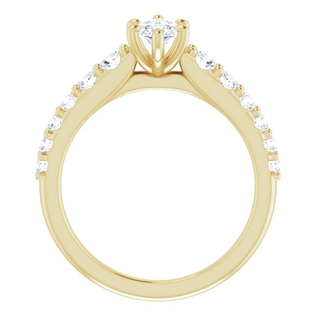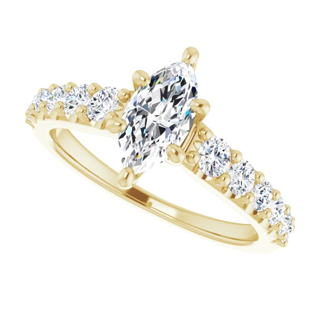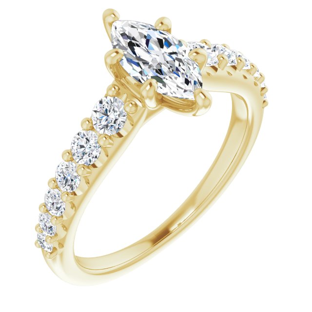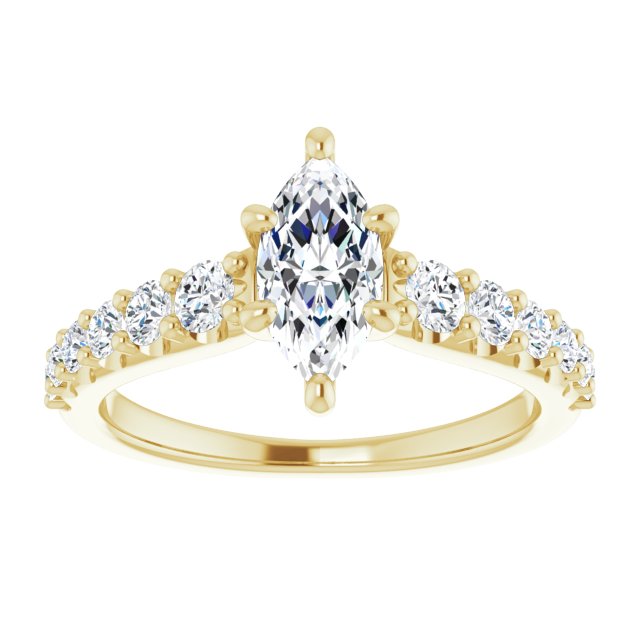 Charlie Women's 14K Gold Marquise and Round Cut Natural Diamond Accented Thin Engagement Ring | Prong Shared Set | 1ct
