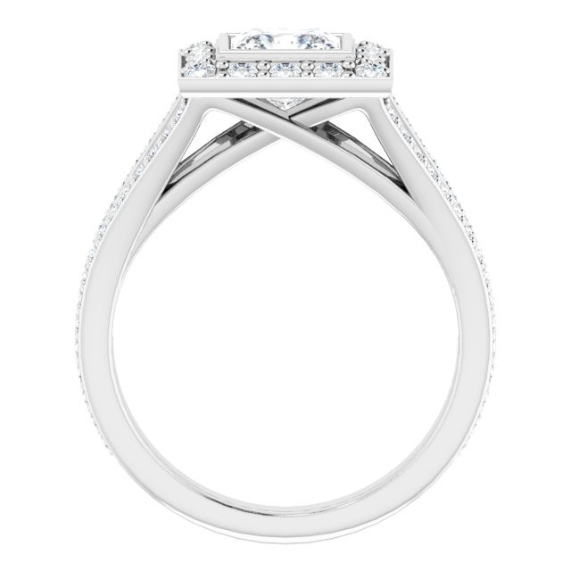 Charlotte Women's Princess and Round Natural Diamond Bezel Halo Engagement Ring | 14K Gold | 1ct