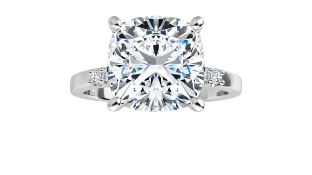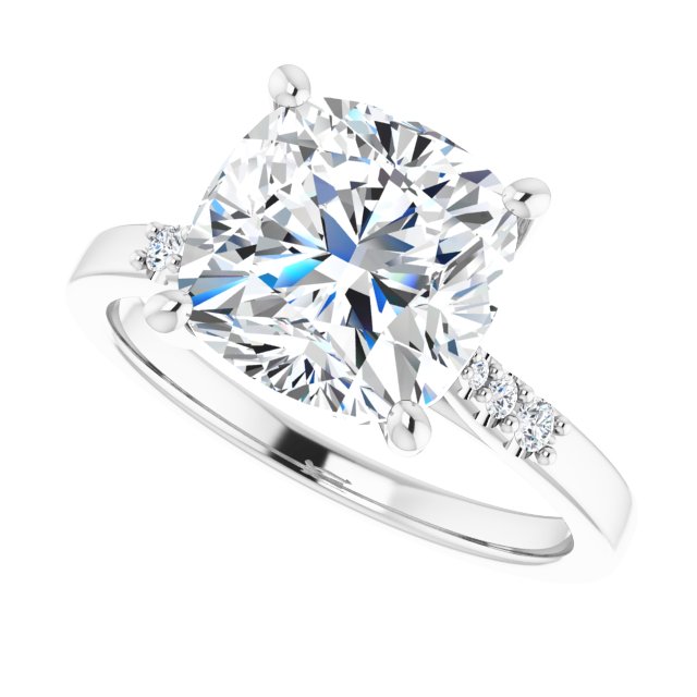 Claire Women's 14K Gold Cushion and Round Cut Natural Diamond Accented Engagement Ring | Prong Shared Set | 4ct