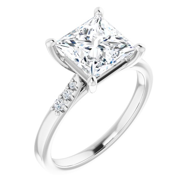 Claire Women's 14K Gold Princess and Round Cut Natural Diamond Accented Engagement Ring | Prong Shared Set | 2ct