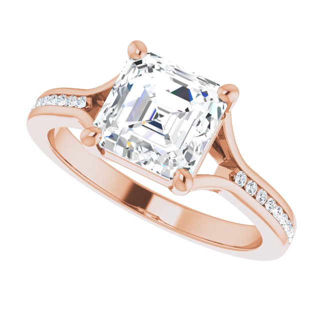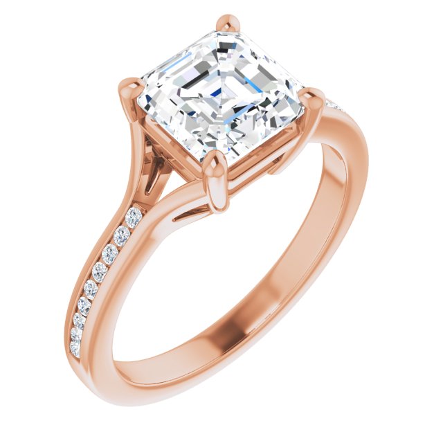 Collins Women's 14K Gold Asscher and Round Cut Lab-Grown Diamond Accented Thin Engagement Ring | Prong Channel Set | 2ct