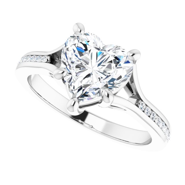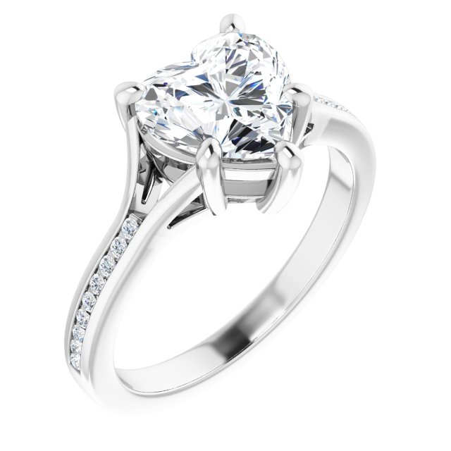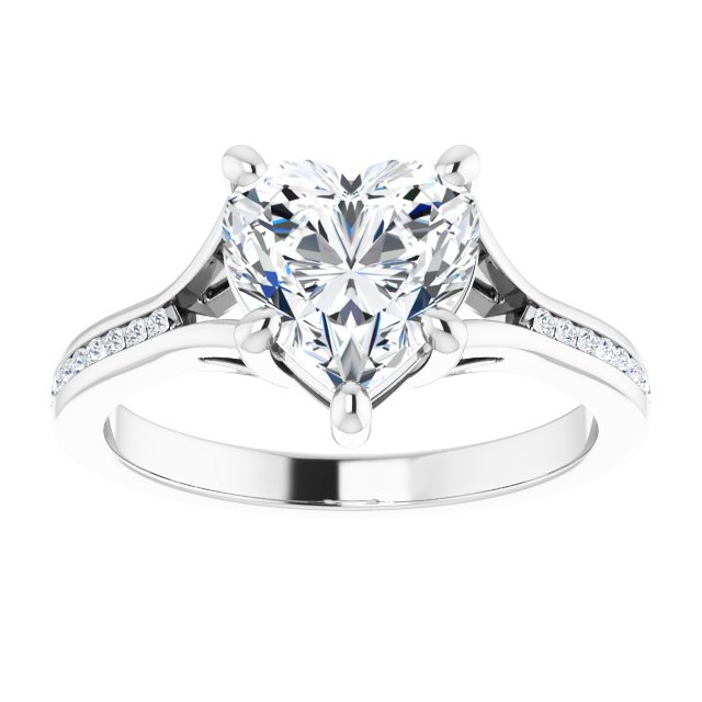 Collins Women's 14K Gold Heart and Round Cut Lab-Grown Diamond Accented Thin Engagement Ring | Prong Channel Set | 2ct
