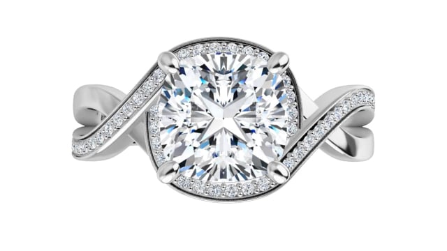 Cora Women's 14K Gold Cushion and Round Cut Lab-Grown Diamond Bypass Engagement Ring | Prong Pinpoint Set | 2ct