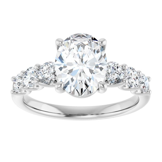 Daisy Women's 14K Gold Oval and Round Cut Natural Diamond Accented Thin Engagement Ring | Prong Shared Set | 3ct