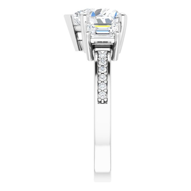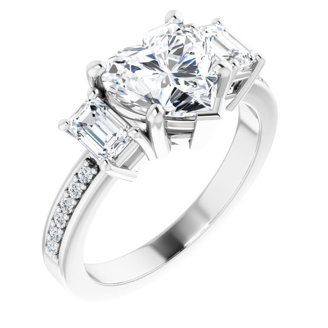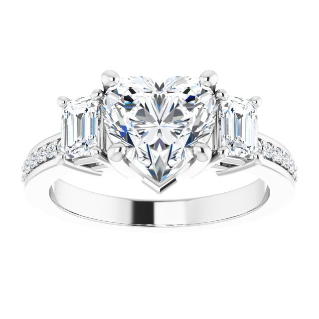 Daphne Women's 14K Gold Emerald and Heart and Round Cut Lab-Grown Diamond Thin Three-Stone Engagement Ring | Prong Pinpoint Set | 2ct