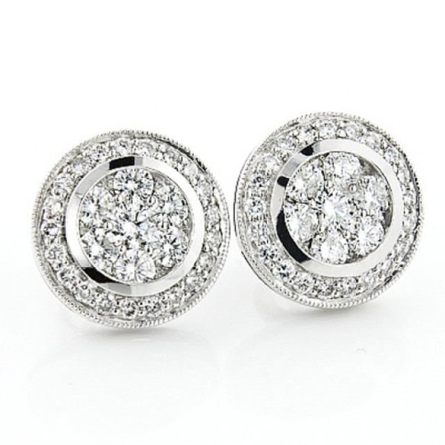 Designer Pave Prong Cut Diamond Cluster Earrings for Men and Women | 14K Gold | Screw Back | 2ct
