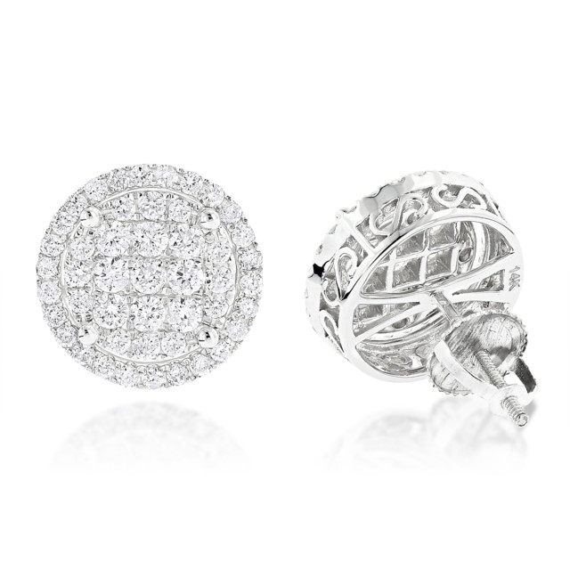 These Men's and Women's Diamond back earrings are made from 14k Gold, weigh 4 grams, and measure 12 mm in width. These Men's and Women's Diamond earrings feature 1.61 carats of White Diamonds are available in 14k white gold, yellow gold and rose gold as well as 18k gold and platinum as a custom order.