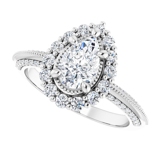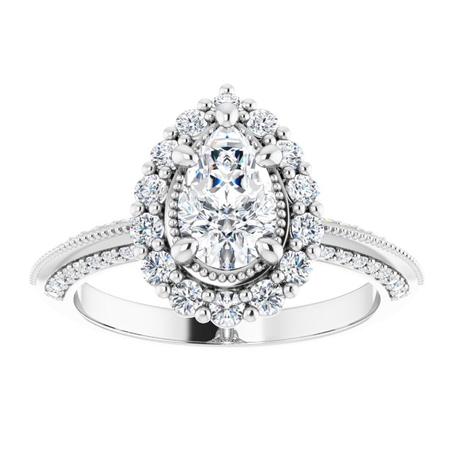 Diana Women's Pear and Round Natural Diamond Thin Halo Engagement Ring | 14K Gold | 1ct