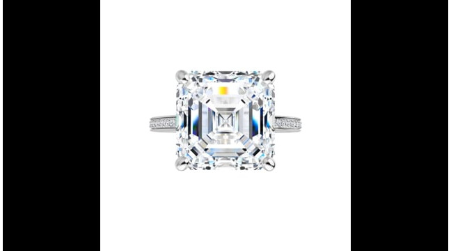 Eleanor Women's 14K Gold Asscher and Round Cut Natural Diamond Accented Engagement Ring | Prong Pinpoint Set | 5ct