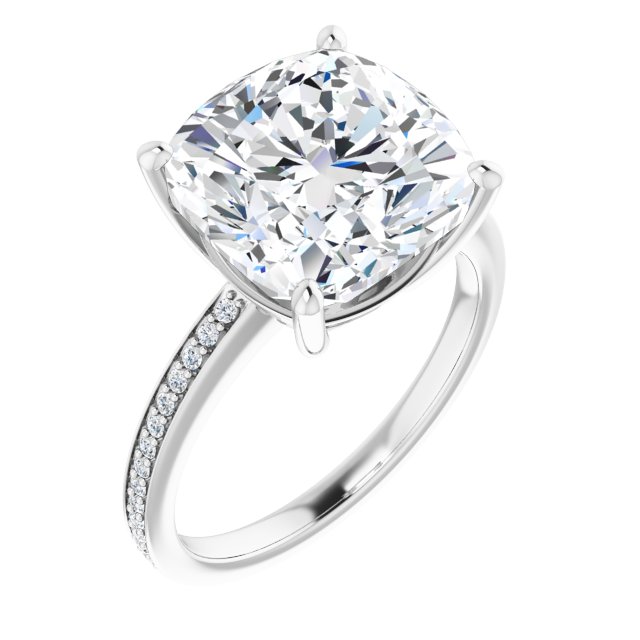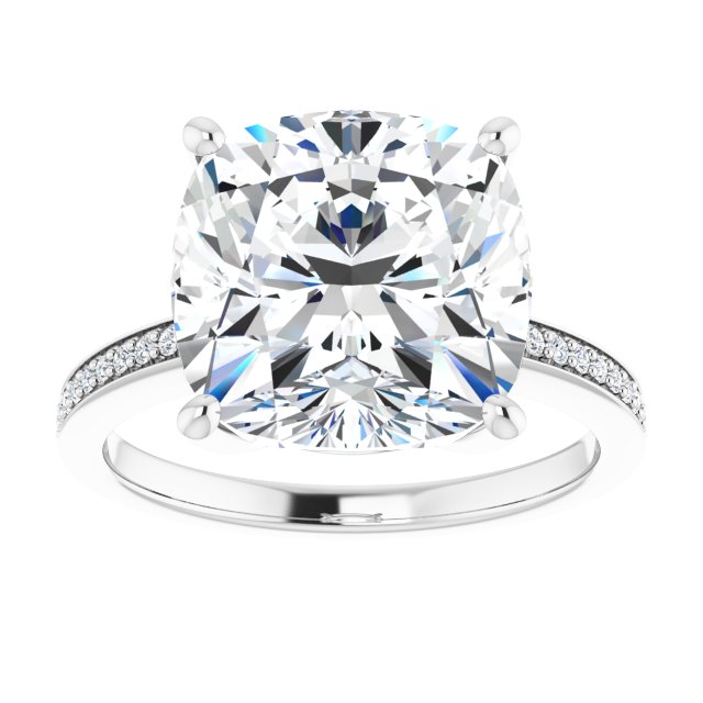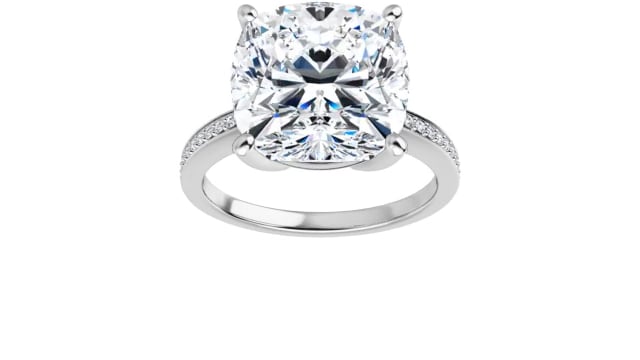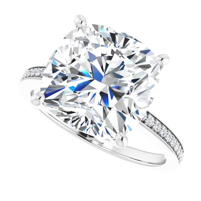 Eleanor Women's 14K Gold Cushion and Round Cut Lab-Grown Diamond Accented Engagement Ring | Prong Pinpoint Set | 7ct