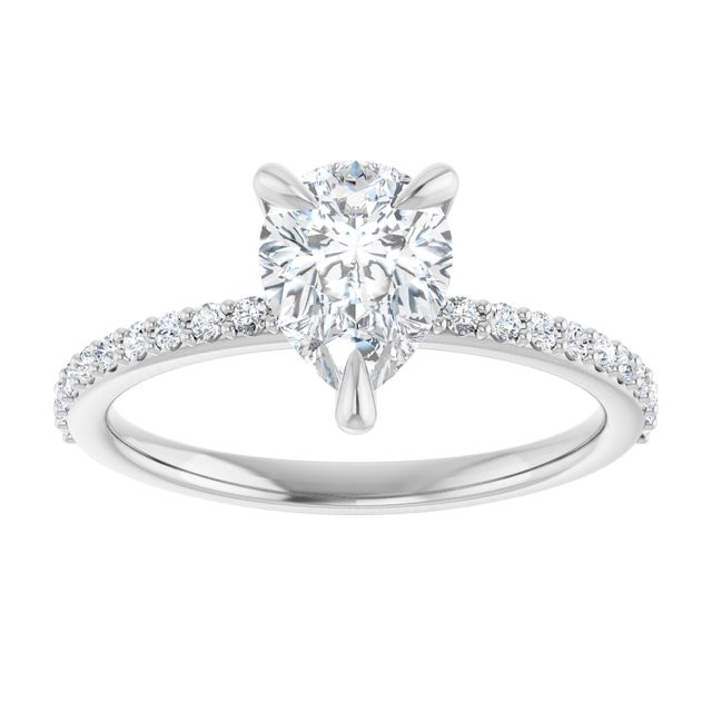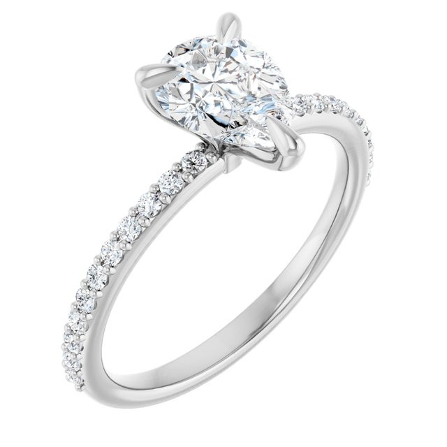 Eliana Women's 14K Gold Pear and Round Cut Natural Diamond Accented Engagement Ring | Claw Prong Pinpoint Set | 3ct