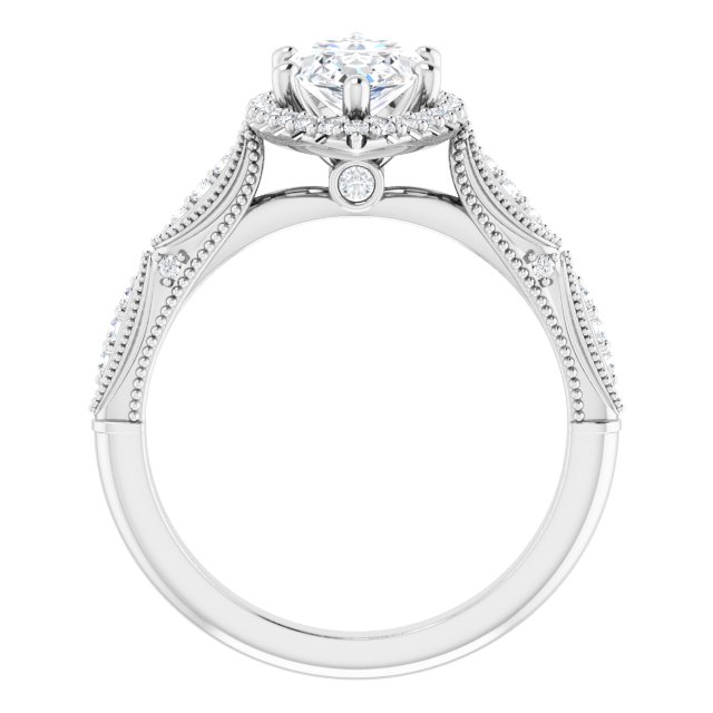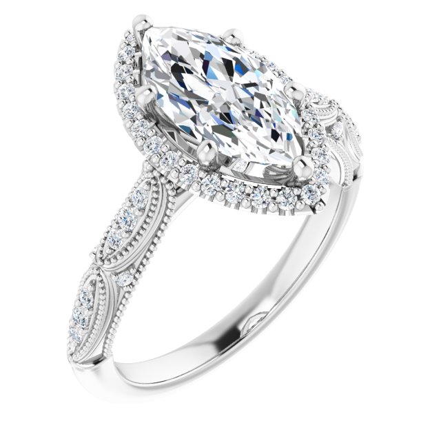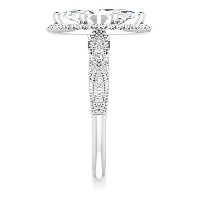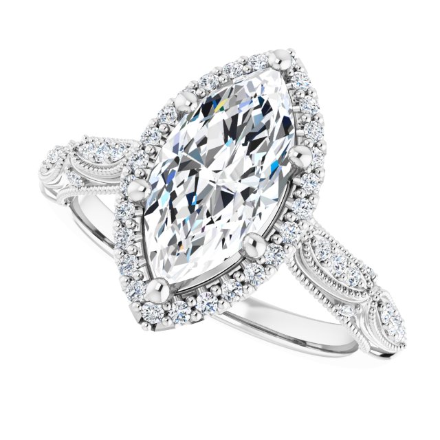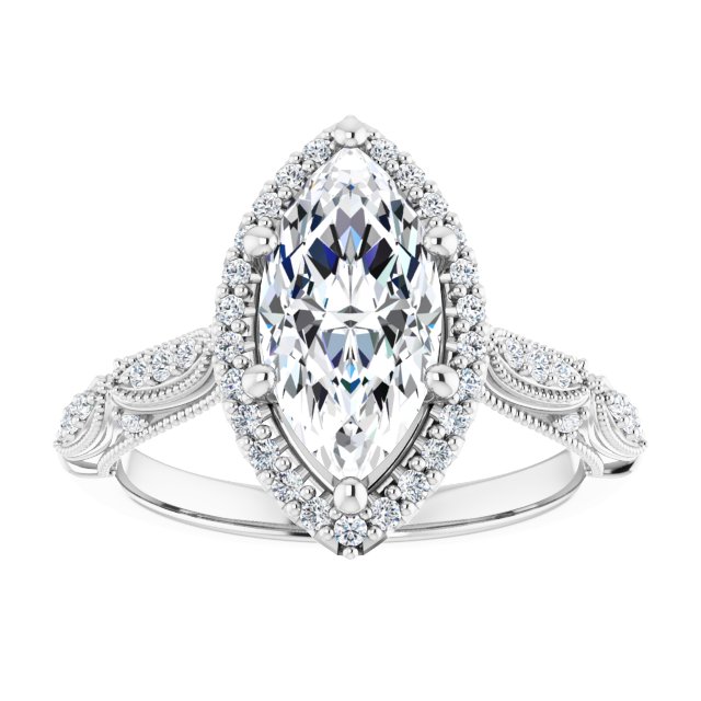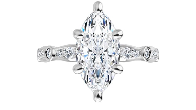 Elise Women's 14K Gold Marquise and Round Cut Lab-Grown Diamond Thin Engagement Ring | Prong Shared Bezel Pinpoint Set | 2ct