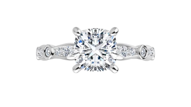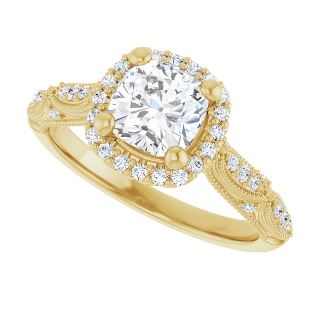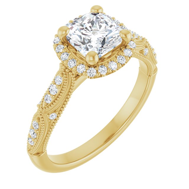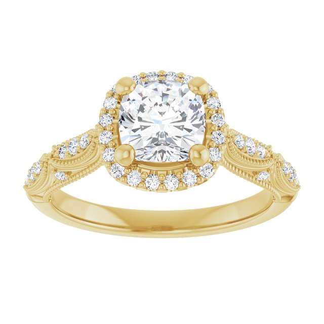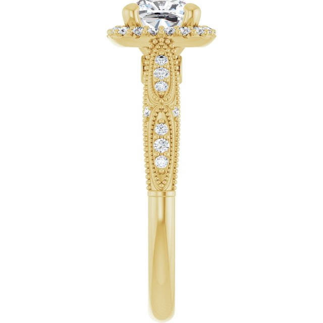 Elise Women's Cushion and Round Natural Diamond Bezel Thin Halo Engagement Ring | 14K Gold | 1ct