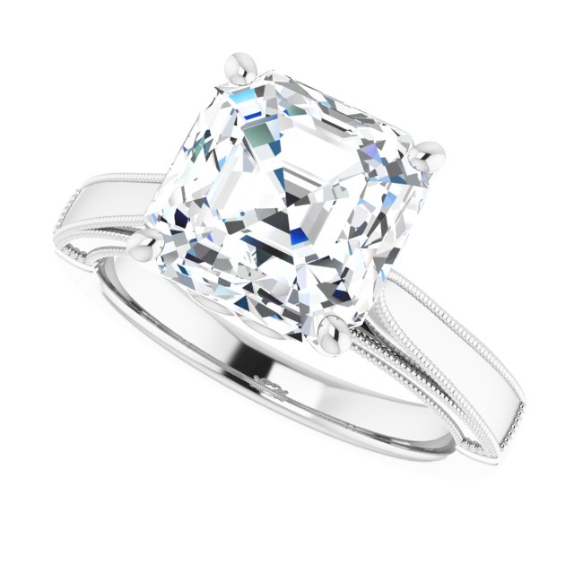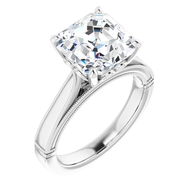 Ellie Women's 14K Gold Asscher Cut Natural Diamond Solitaire Engagement Ring | Prong Set | 4ct