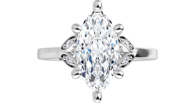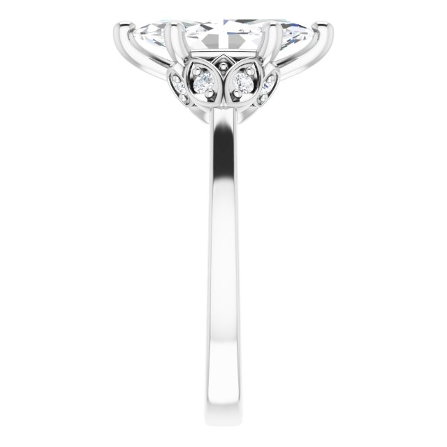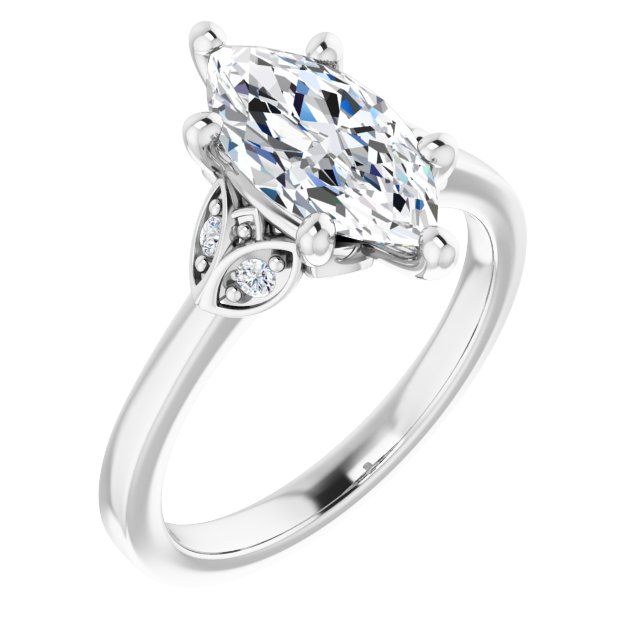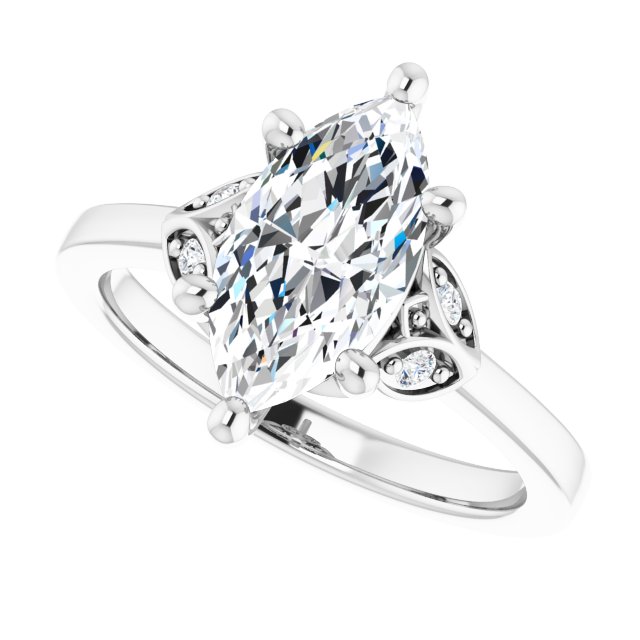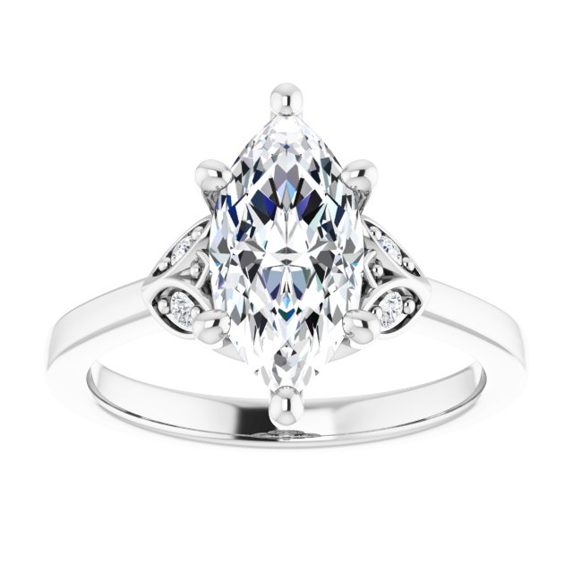 Elsie Women's 14K Gold Marquise and Round Cut Lab-Grown Diamond Accented Thin Engagement Ring | Prong Pinpoint Set | 2ct