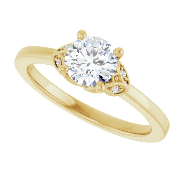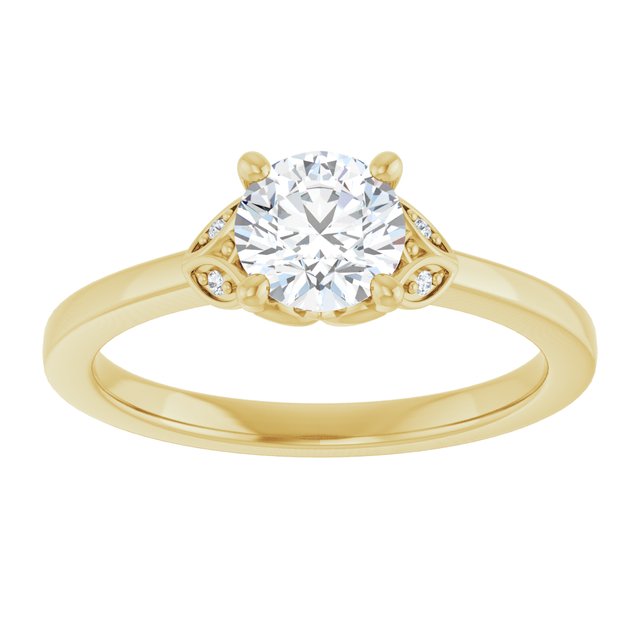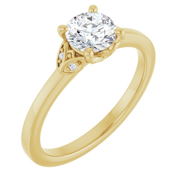 Elsie Women's 14K Gold Round Cut Natural Diamond Accented Thin Engagement Ring | Prong Pinpoint Set