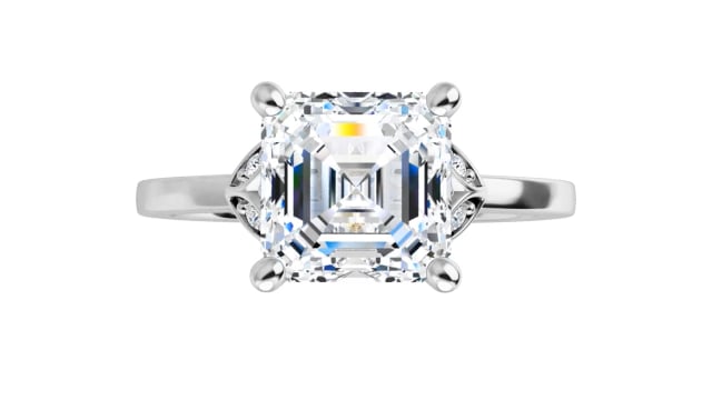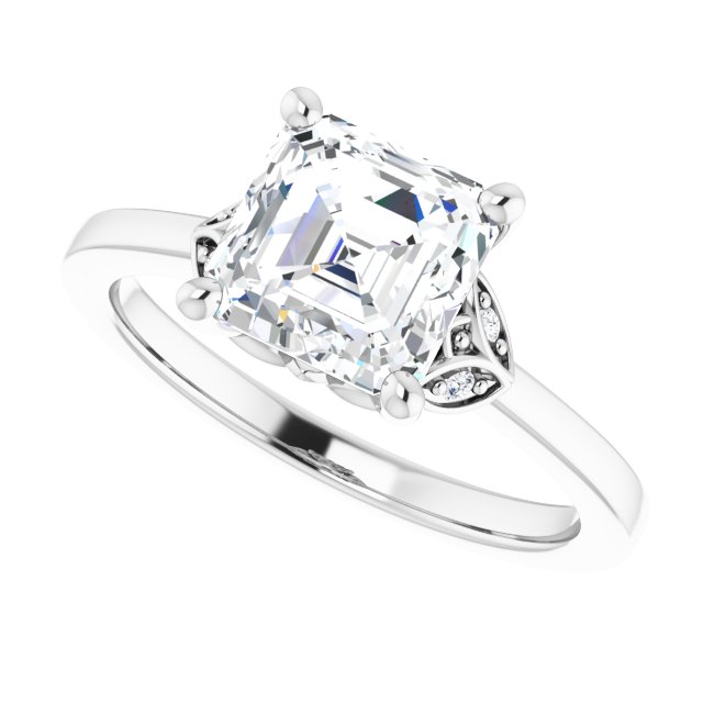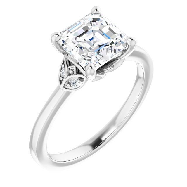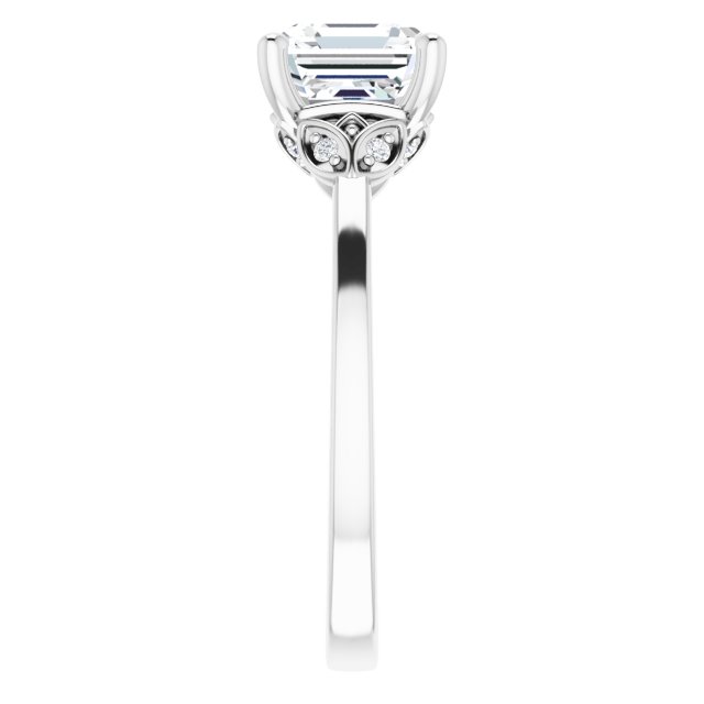 Elsie Women's Asscher and Round Natural Diamond Accented Thin Engagement Ring | 14K Gold | 2ct