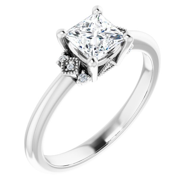Emerson Women's Princess and Round Natural Diamond Accented Thin Engagement Ring | 14K Gold