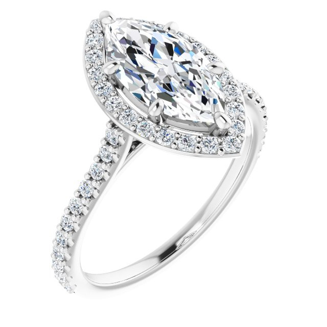 Emilia Women's 14K Gold Marquise and Round Cut Lab-Grown Diamond Engagement Ring | Prong Pinpoint Shared Bezel Set | 2ct