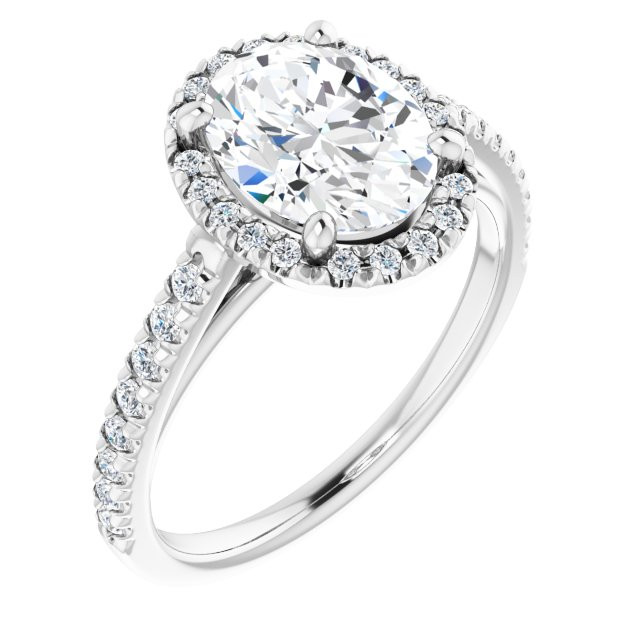 Esther Women's 14K Gold Oval and Round Cut Lab-Grown Diamond French-Set Engagement Ring | Prong French Set Set | 2ct