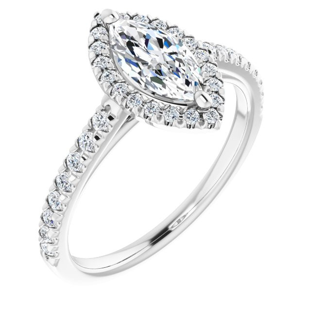 Esther Women's Marquise and Round Natural Diamond Thin French-Set Halo Engagement Ring | 14K Gold | 1ct