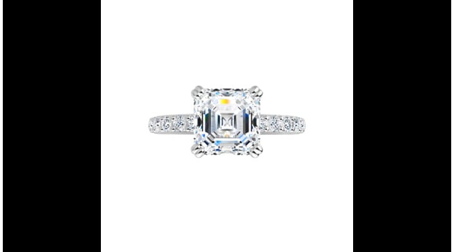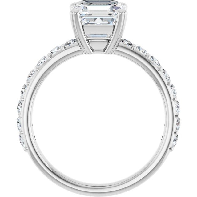 Evelyn Women's 14K Gold Asscher and Round Cut Natural Diamond Accented Engagement Ring | Prong Pinpoint Set | 5ct