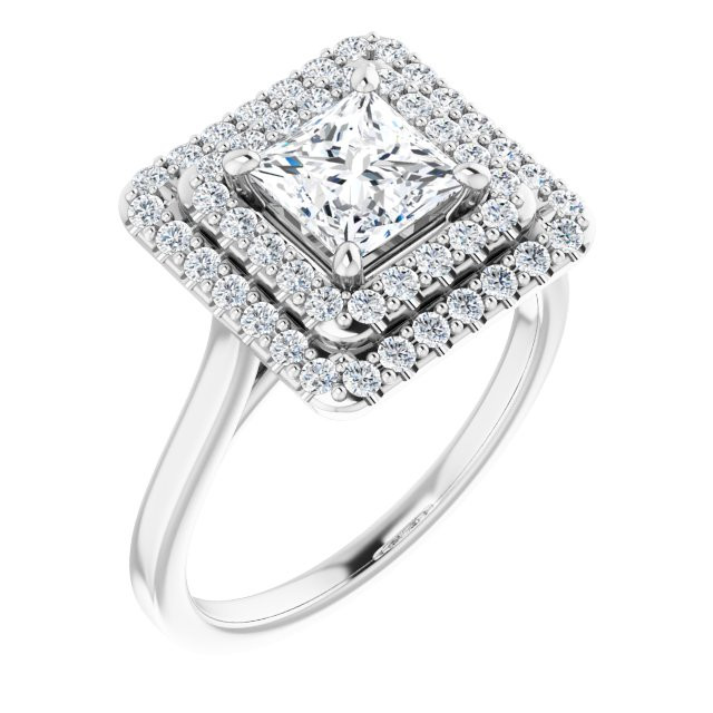 Everly Women's 14K Gold Princess and Round Cut Natural Diamond Engagement Ring | Prong Shared Set | 1ct