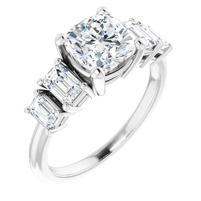 Evie Women's 14K Gold Cushion and Emerald Cut Lab-Grown Diamond Thin Five-Stone Engagement Ring | Prong Set | 2ct