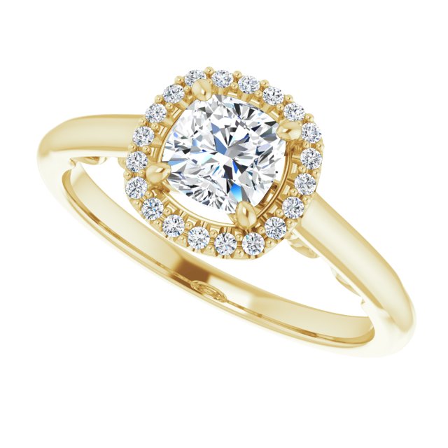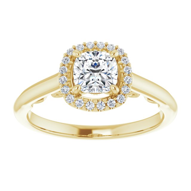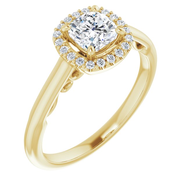 Gabriella Women's 14K Gold Cushion and Round Cut Natural Diamond Engagement Ring | Prong Shared Set