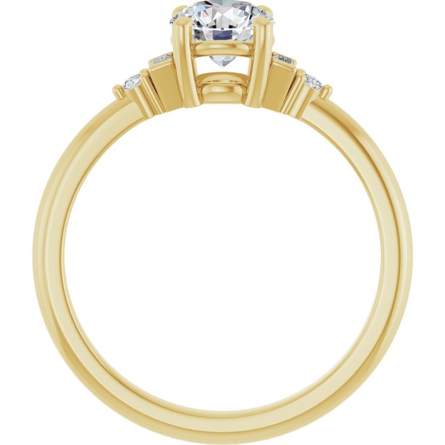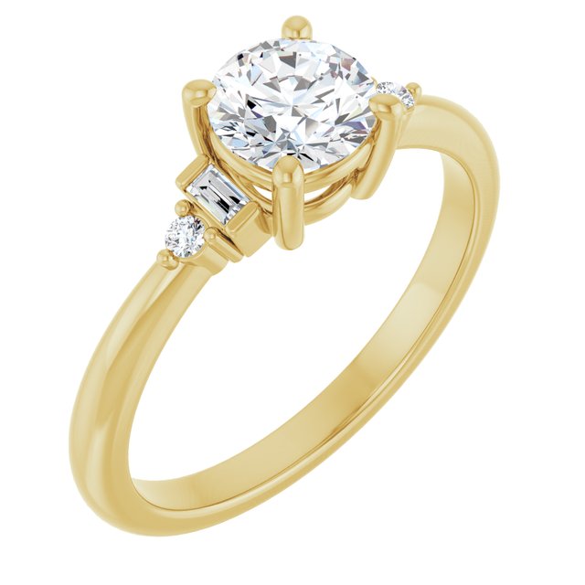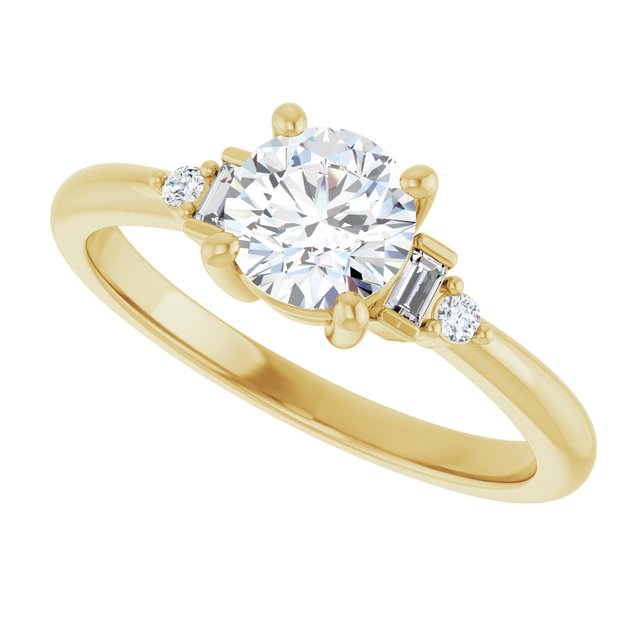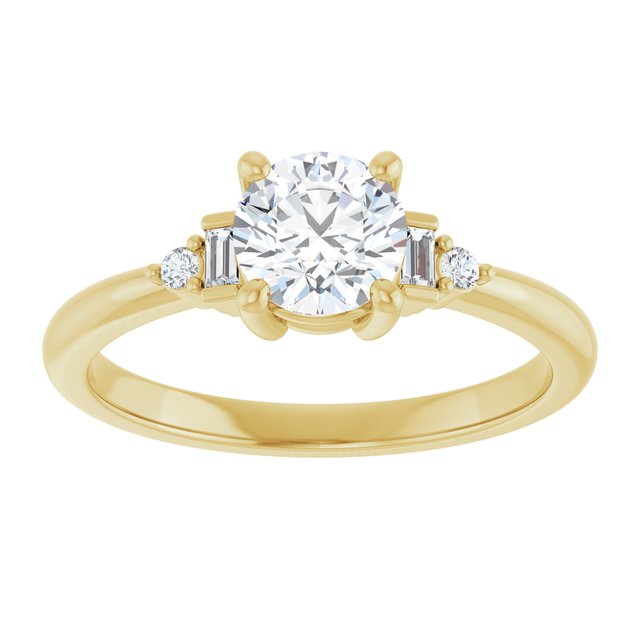 Gemma Women's 14K Gold Straight Baguette and Round Cut Natural Diamond Accented Thin Engagement Ring | Prong Bar Set