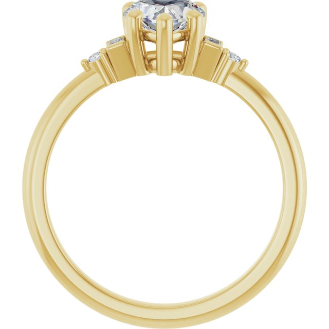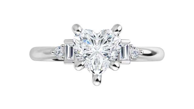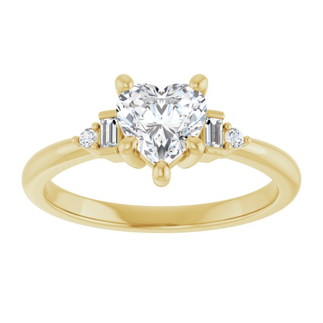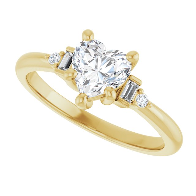 Gemma Women's Straight Baguette and Heart and Round Natural Diamond Accented Thin Engagement Ring | 14K Gold