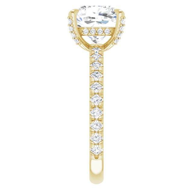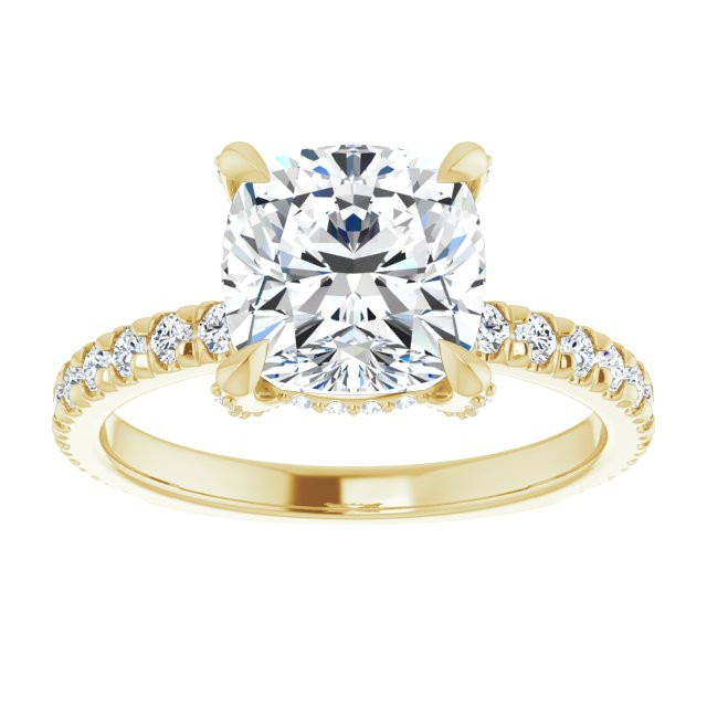 Genevieve Women's 14K Gold Cushion and Round Cut Natural Diamond Accented Thin Engagement Ring | Claw Prong Shared French Set Set | 3ct
