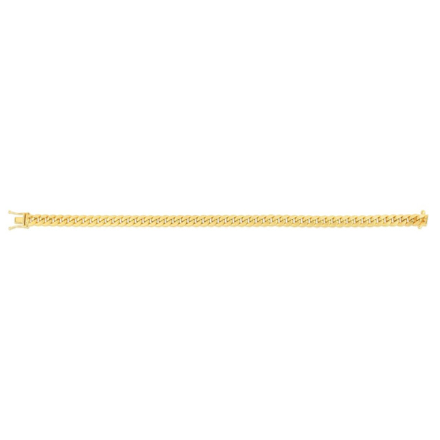 This Women's Chain feature a Lobster clasp. Made from k Yellow Gold with a Cuban link type and Solid fitting. This Chain measures 18 inches in length and 2.6 mm in width. It color diamonds and a design