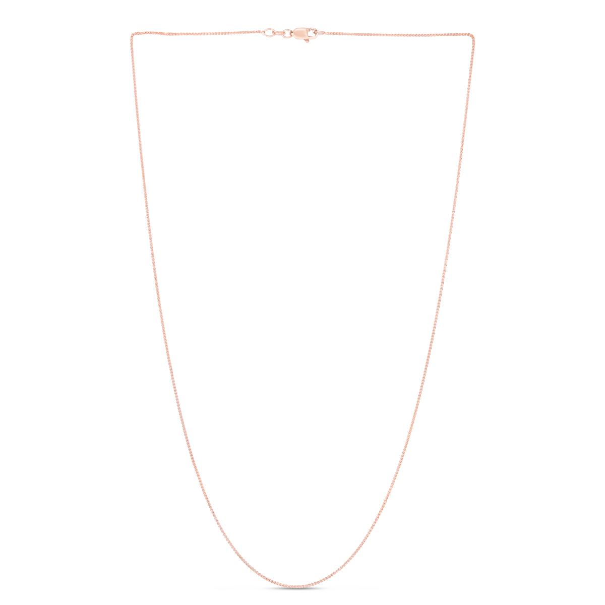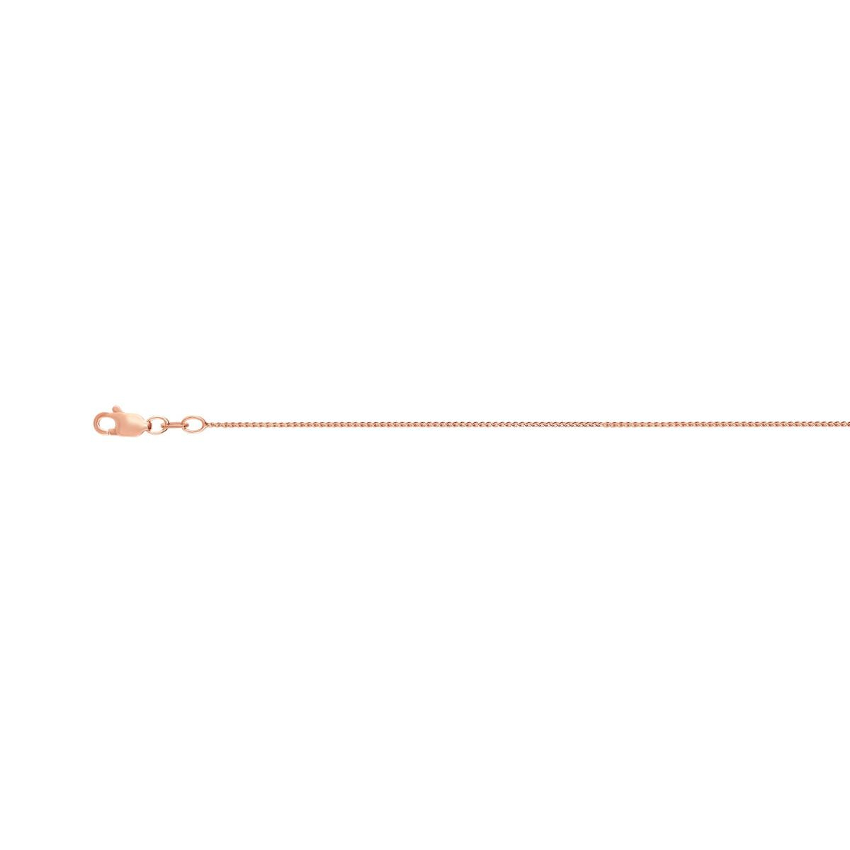 This Women's Chain feature a Lobster clasp. Made from k Rose Gold with a Wheat link type and Solid fitting. This Chain measures 18 inches in length and 0.6 mm in width. It color diamonds and a design
