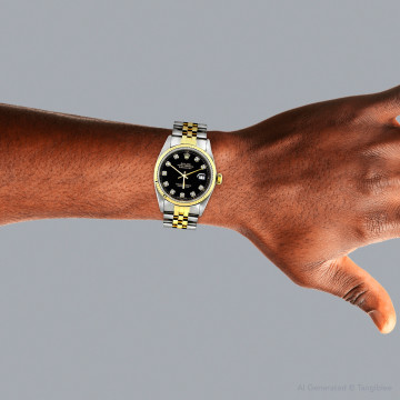 This Men's Casual Rolex Oyster Perpetual Datejust is a luxurious and stylish watch. It features a White/Yellow color scheme, adding sophistication to its design. The watch is made of Gold/Stainless Steel, offering a premium feel. The case measures 36 mm. The bracelet is made of Stainless Steel It features a Jubilee style bracelet for a comfortable fit. The bezel is made of Yellow Gold. The dial is White, enhancing its visual appeal. Powered by an Automatic movement. Offered in Very Good condition, and comes with a seller's warranty of 60 months. Also available on custom order with additional options. These pre-owned Rolex watches are authentic Rolex watches with genuine diamonds, in excellent condition, they are checked for authenticity and basic water resistance. Watches will withstand an occasional rain just fine, but they are not diver's watches and should not be worn in shower or while swimming.