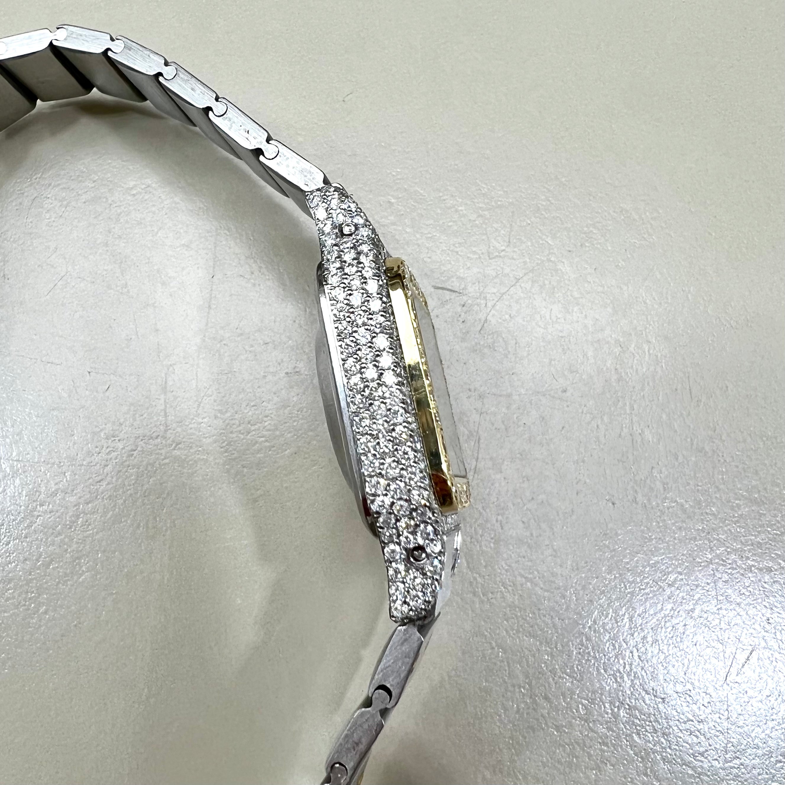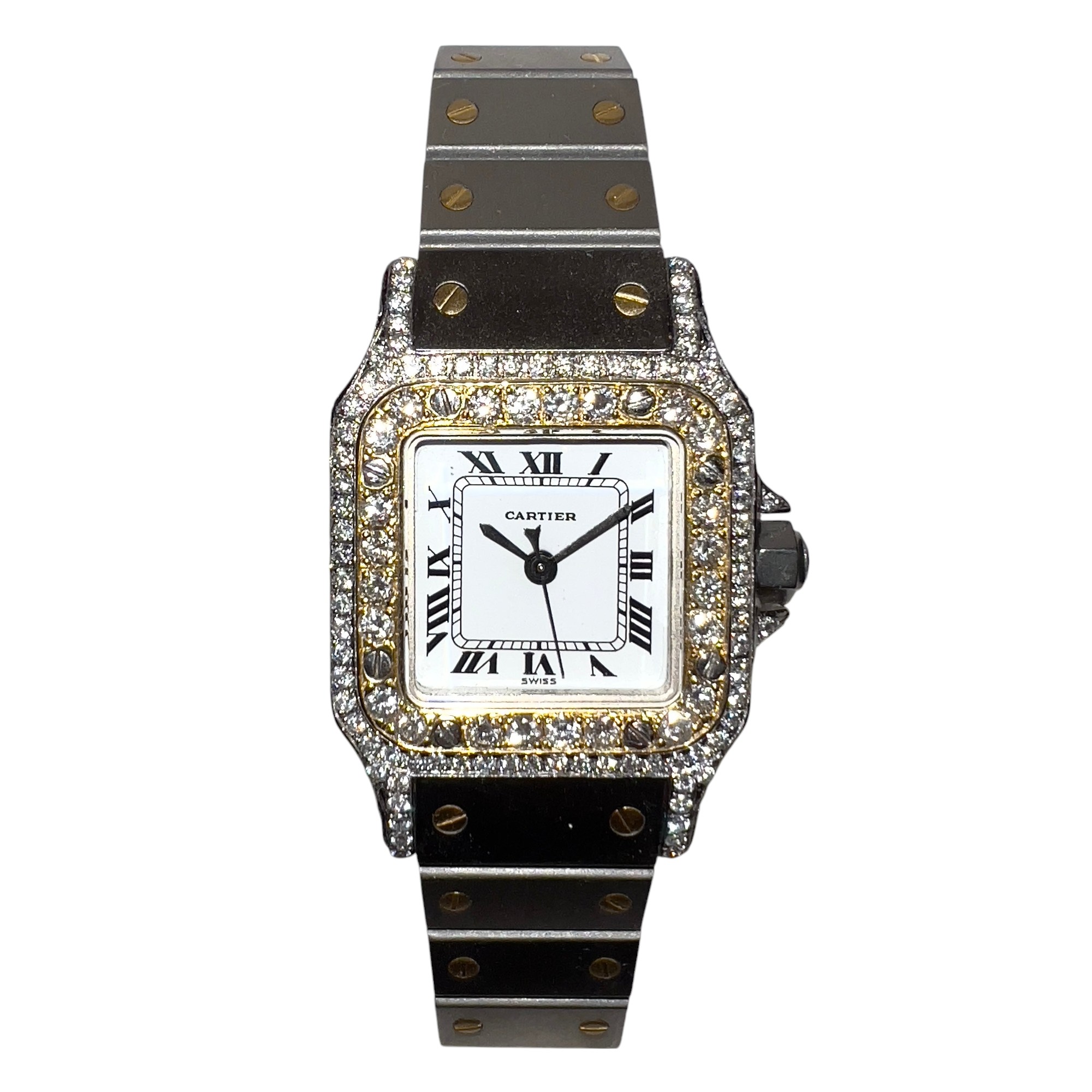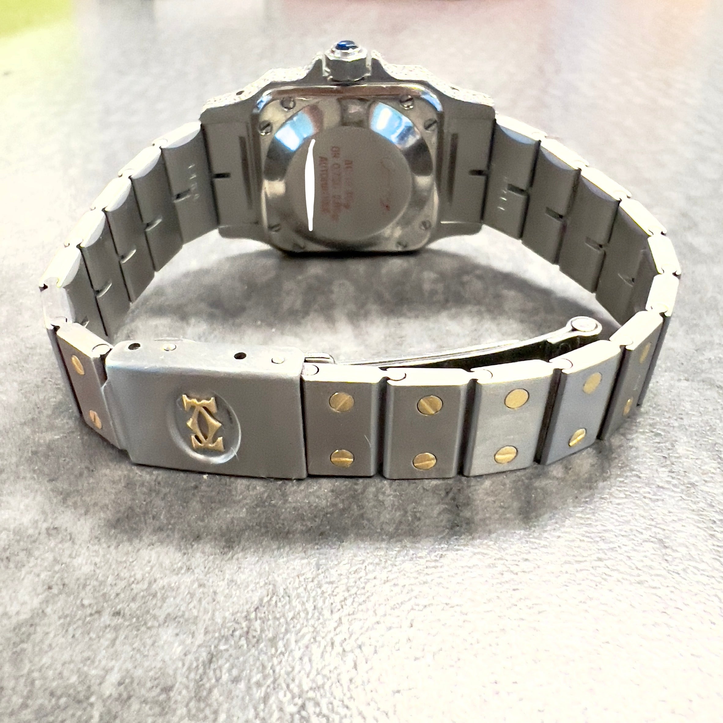 This Women's Two-Tone Cartier Santos de Cartier Galbee is a luxurious and stylish watch. The watch is made of Gold/Stainless Steel, offering a premium feel. The case measures 24 mm. The bracelet is made of Yellow Gold. The bezel is made of Gold and is set with White. The dial is White, enhancing its visual appeal. Powered by an Automatic movement. Offered in Good condition, and comes with a seller's warranty of 60 months. Also available on custom order with additional options.