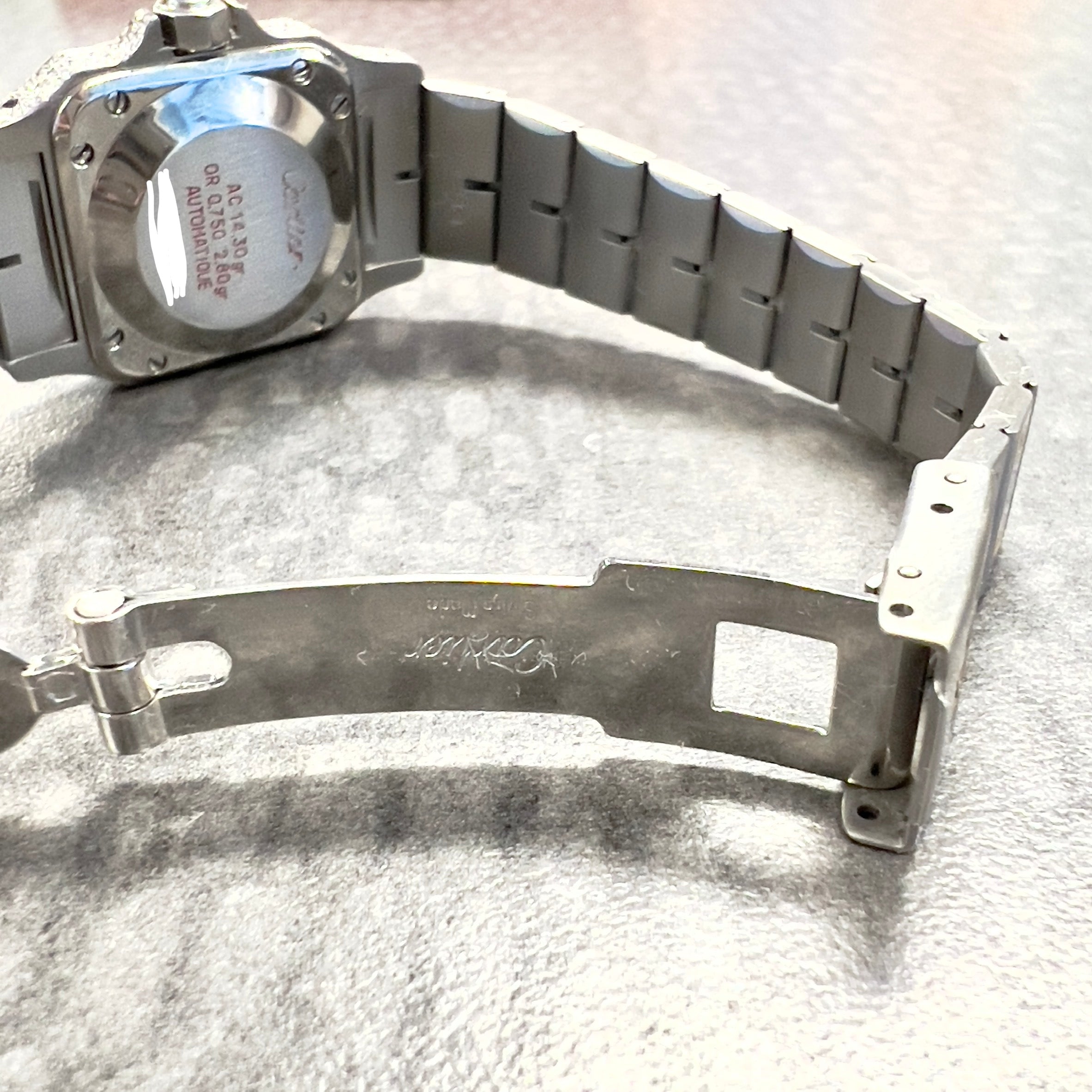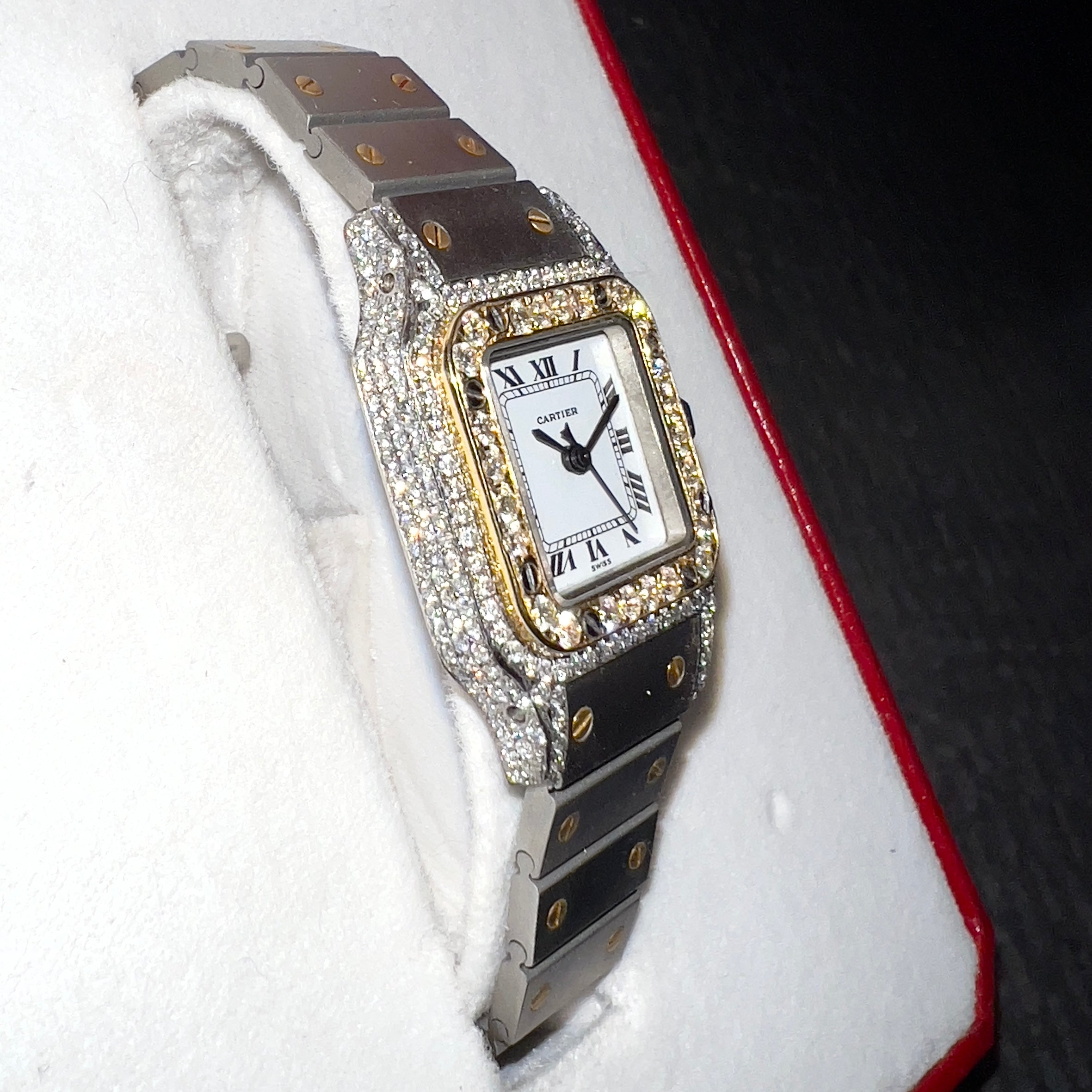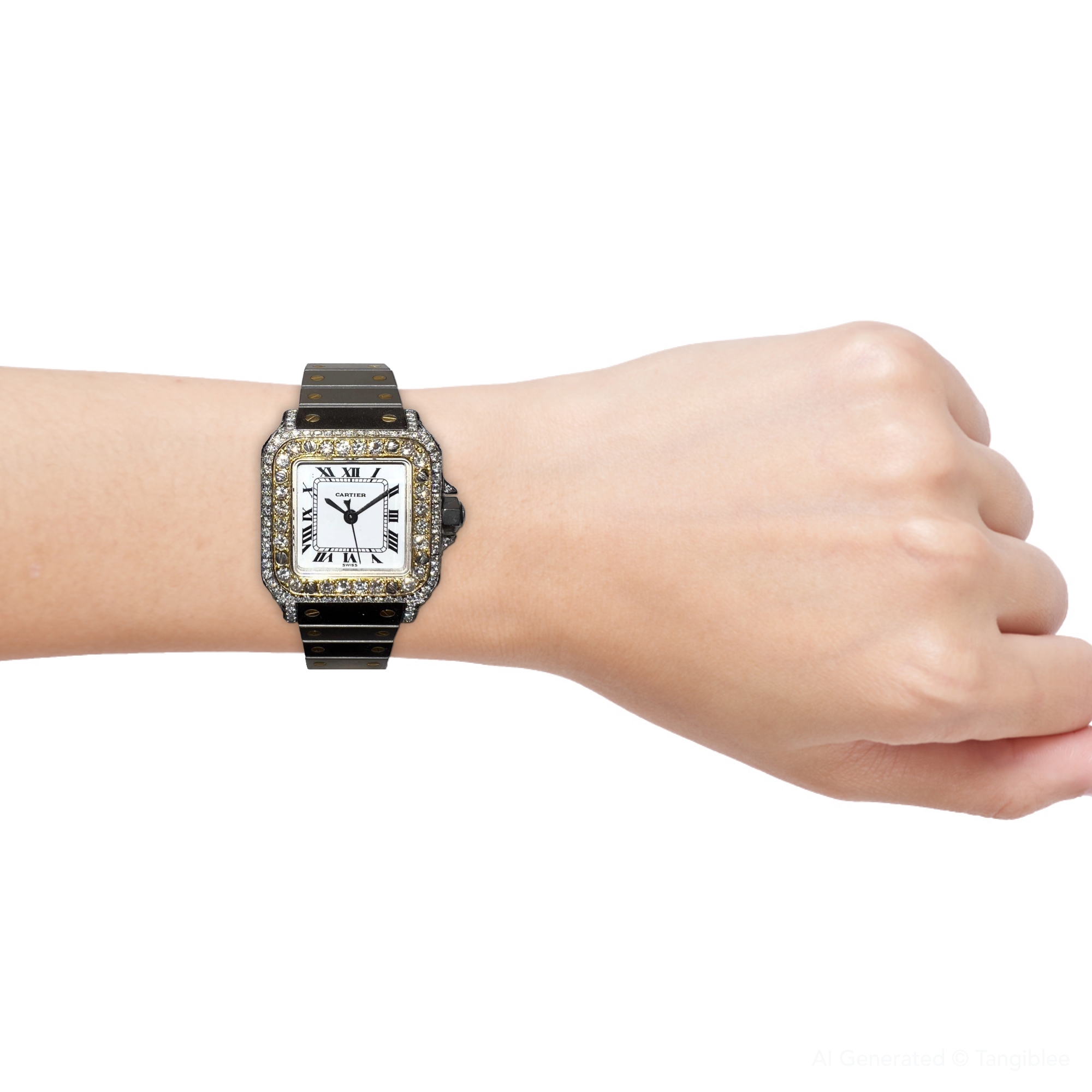 This Women's Two-Tone Cartier Santos de Cartier Galbee is a luxurious and stylish watch. The watch is made of Gold/Stainless Steel, offering a premium feel. The case measures 24 mm. The bracelet is made of Yellow Gold. The bezel is made of Gold and is set with White. The dial is White, enhancing its visual appeal. Powered by an Automatic movement. Offered in Good condition, and comes with a seller's warranty of 60 months. Also available on custom order with additional options.