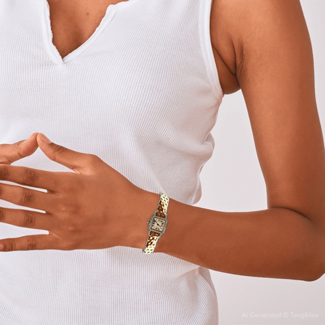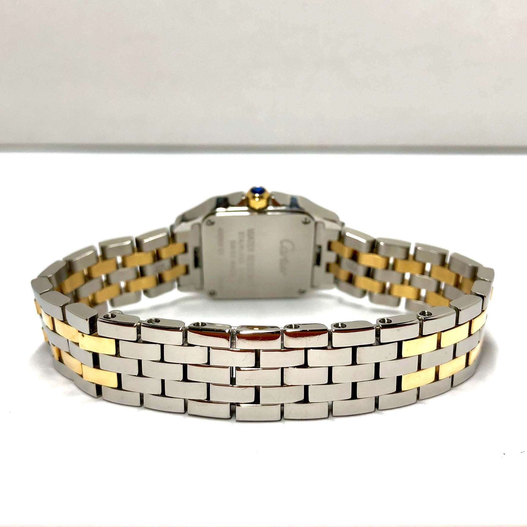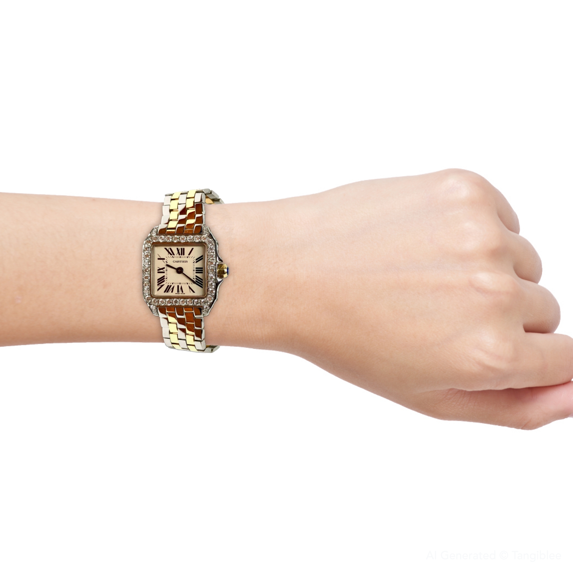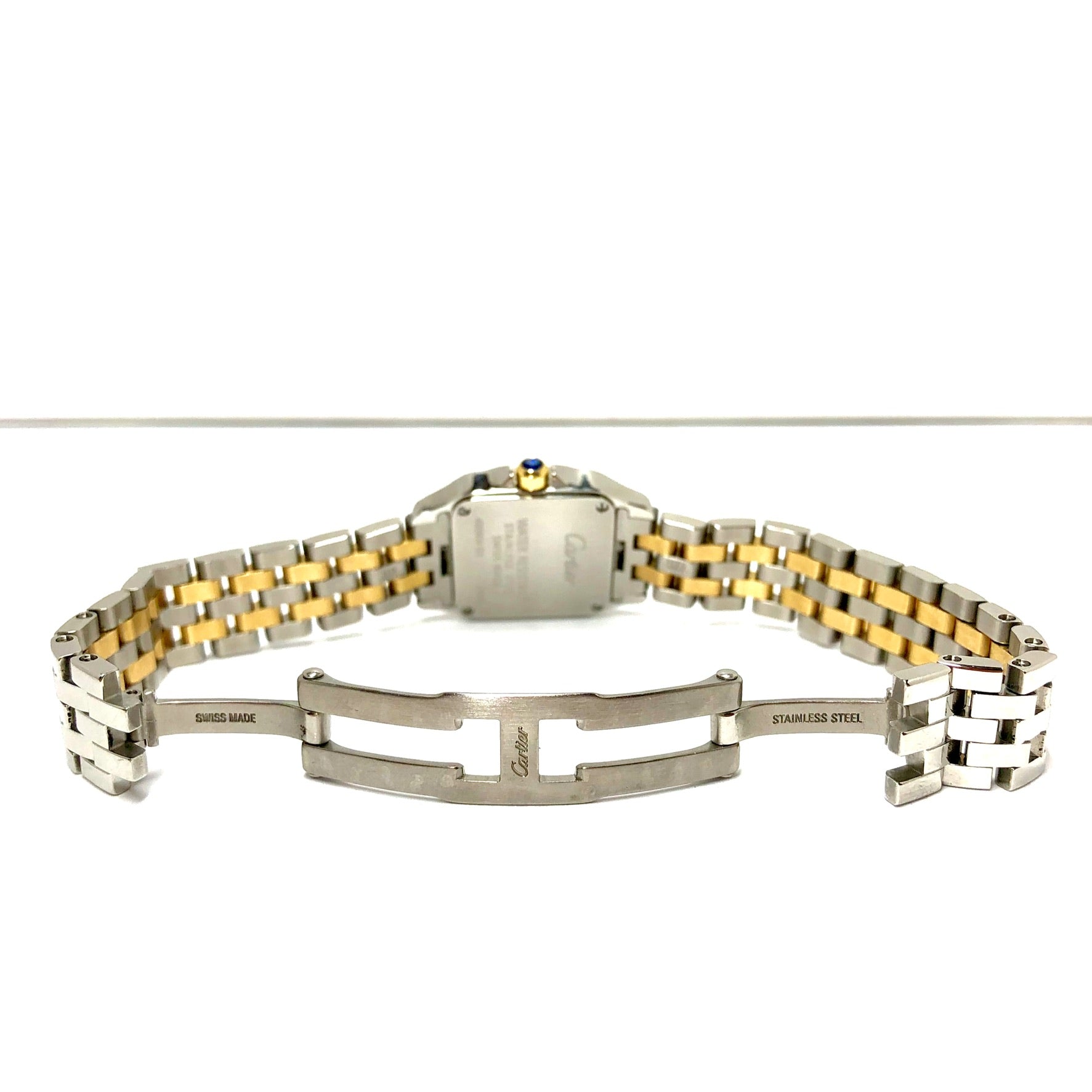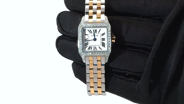 This Women's Two-Tone Cartier Santos Demoiselle is a luxurious and stylish watch. The watch is made of Gold/Stainless Steel, offering a premium feel. The case measures 20 mm. The bracelet is made of Yellow Gold and is set with White. The dial is White, enhancing its visual appeal. Powered by a Quartz movement. Offered in Good condition, and comes with a seller's warranty of 60 months. Also available on custom order with additional options.