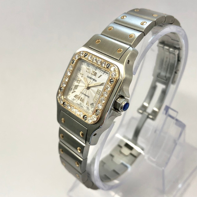 This Women's Cartier Santos Galbee is a luxurious and stylish watch. The watch is made of Gold/Stainless Steel, offering a premium feel. The case measures 24 mm. The bracelet is made of Yellow Gold. The bezel is made of Yellow Gold. The dial is Silver, enhancing its visual appeal. Powered by an Automatic movement. Offered in Very Good condition, and comes with a seller's warranty of 60 months. Also available on custom order with additional options.