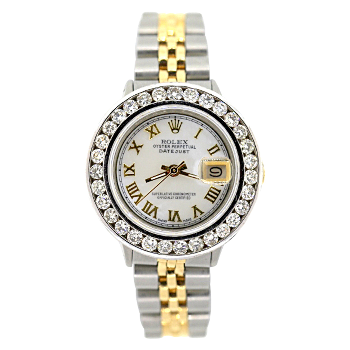 This Women's Business Rolex Oyster Perpetual Datejust is a luxurious and stylish watch. It features a White color scheme, adding sophistication to its design. The watch is made of Gold/Stainless Steel, offering a premium feel. The case measures 26 mm. It features a Jubilee style bracelet for a comfortable fit. And is set with Diamonds. The dial is White, enhancing its visual appeal. Powered by an Automatic movement. Offered in Very Good condition, and comes with a seller's warranty of 60 months. Also available on custom order with additional options. These pre-owned Rolex watches are authentic Rolex watches with genuine diamonds, in excellent condition, they are checked for authenticity and basic water resistance. Watches will withstand an occasional rain just fine, but they are not diver's watches and should not be worn in shower or while swimming.