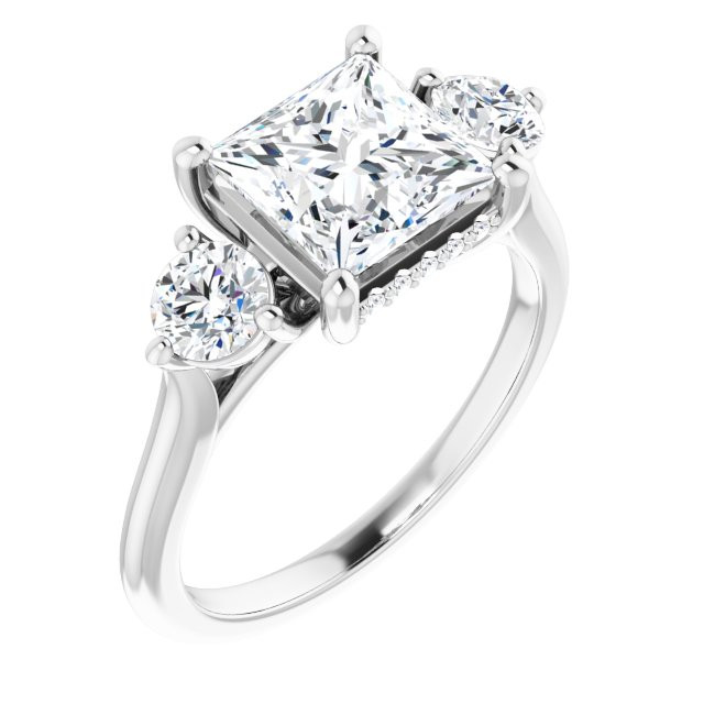 Hallie Women's 14K Gold Princess and Round Cut Lab-Grown Diamond Thin Three-Stone Engagement Ring | Prong Shared Set | 2ct