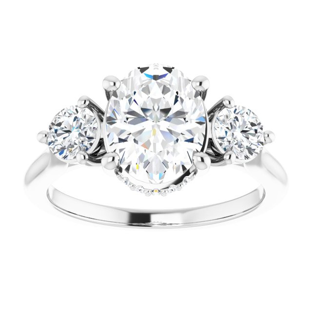 Hallie Women's Oval and Round Lab-Grown Diamond Thin Three-Stone Engagement Ring | 14K Gold | VS1 | 2ct