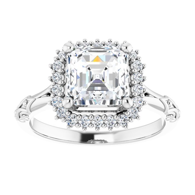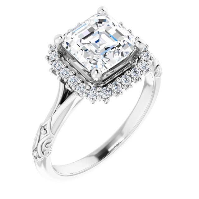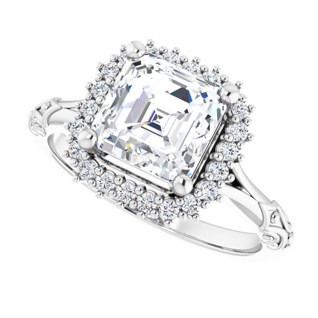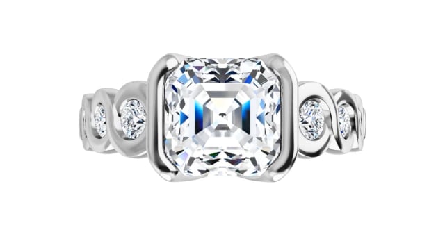 Harlow Women's 14K Gold Asscher and Round Cut Lab-Grown Diamond Thin Engagement Ring | Prong Shared Set | 2ct