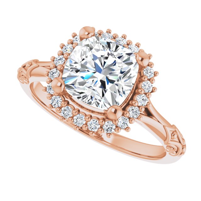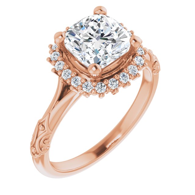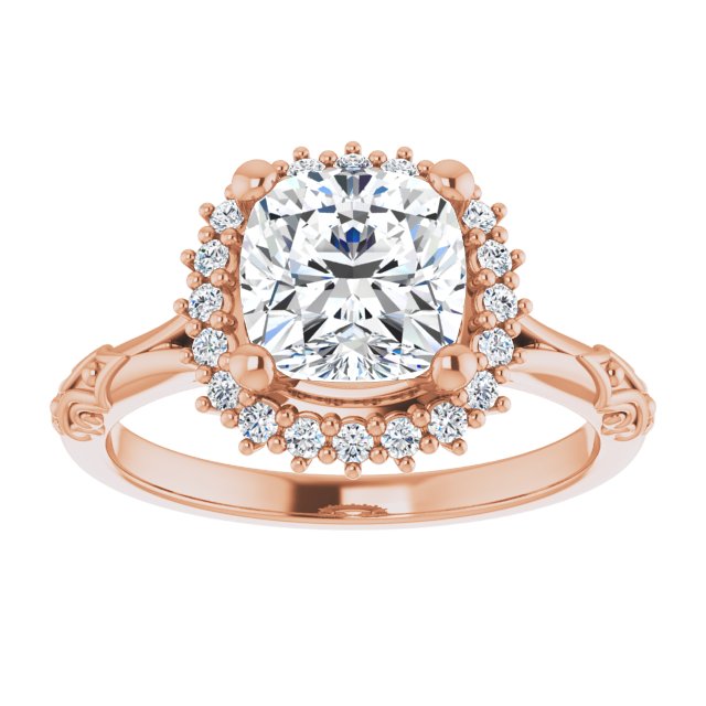 Harlow Women's Cushion and Round Lab-Grown Diamond Thin Halo Engagement Ring | 14K Gold | VS1 | 2ct