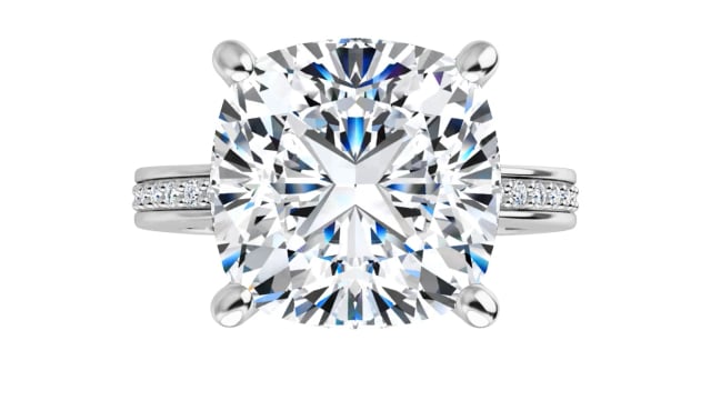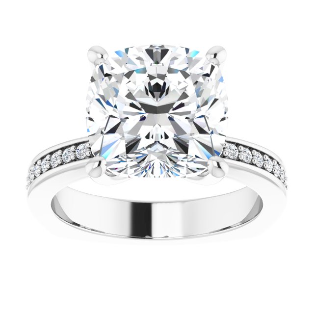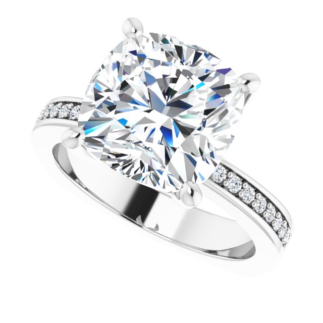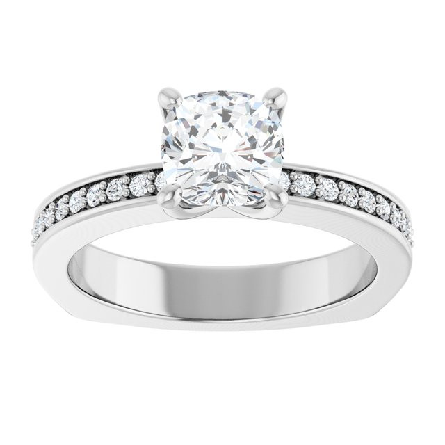 Harper Women's 14K Gold Cushion and Round Cut Natural Diamond Accented Engagement Ring | Prong Pinpoint Set | 5ct
