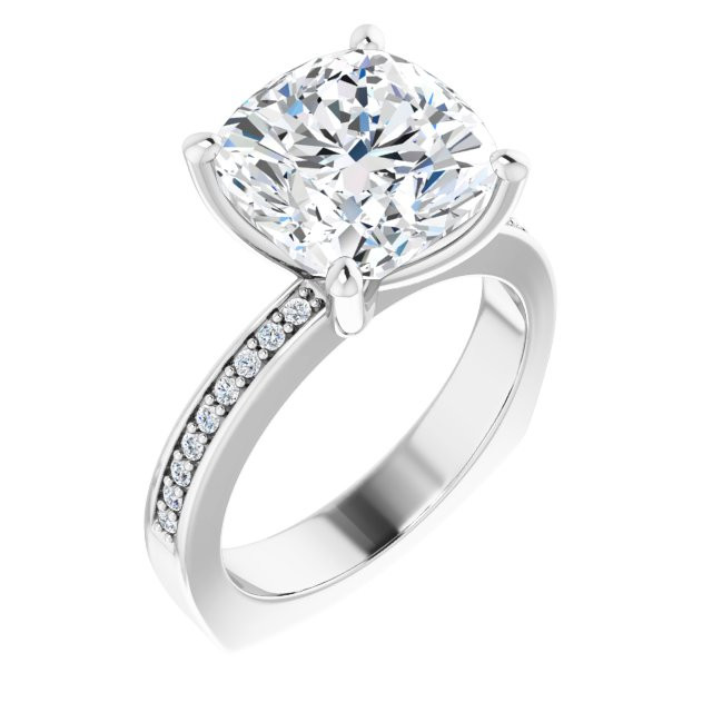 Harper Women's 14K Gold Cushion and Round Cut Natural Diamond Accented Engagement Ring | Prong Pinpoint Set | 5ct