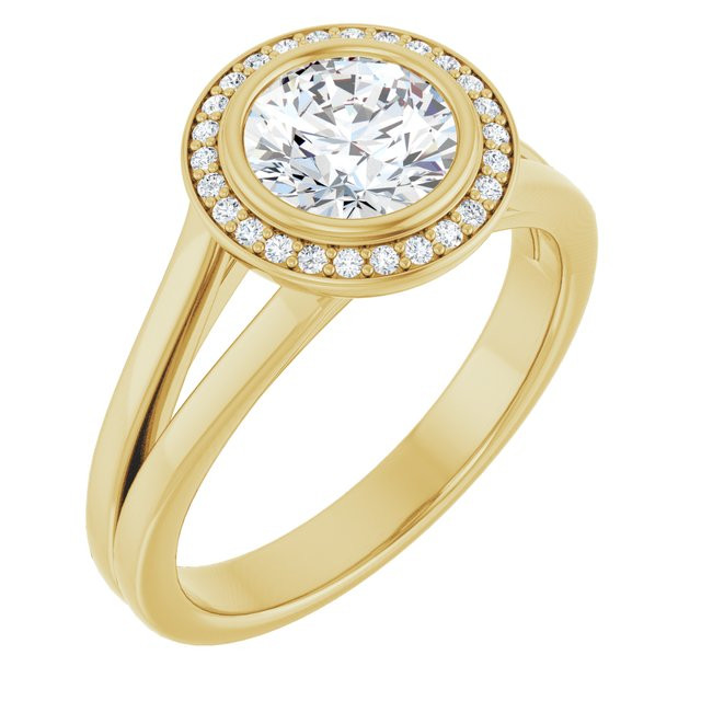 Hazel Women's Round Natural Diamond Bezel Halo Engagement Ring | 14K Gold | 1ct