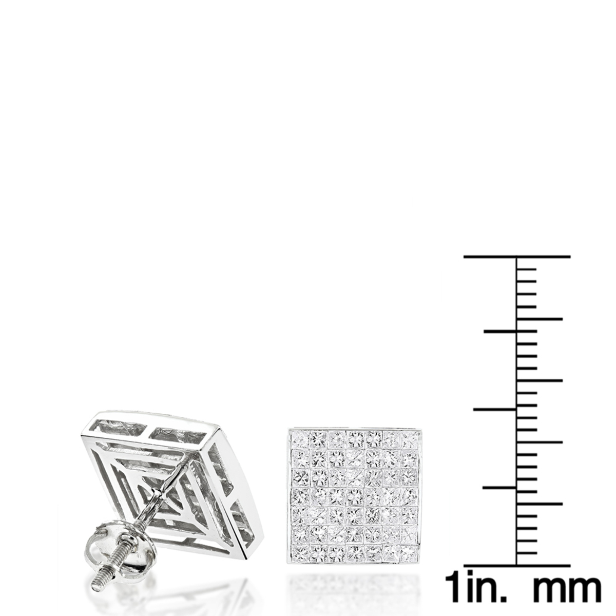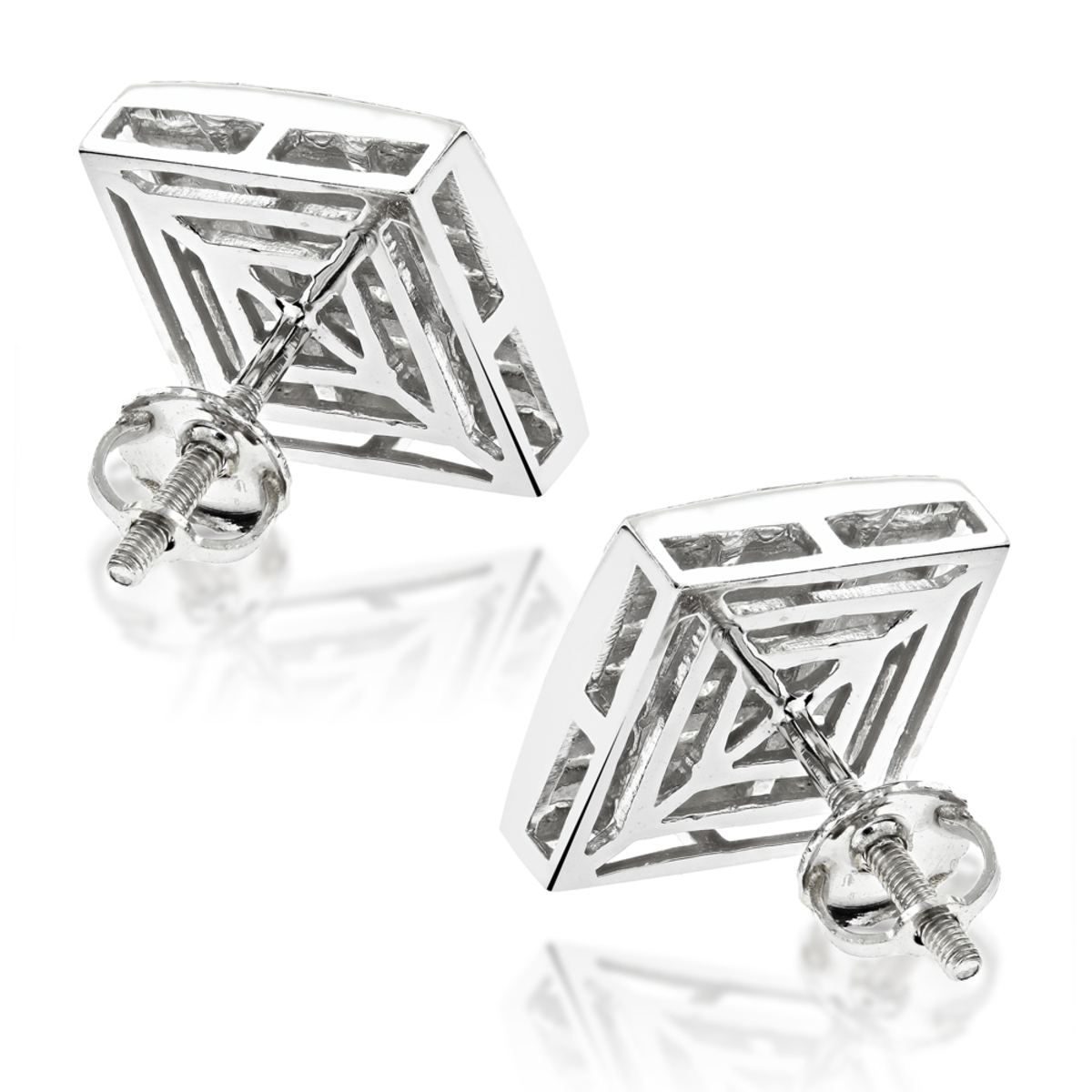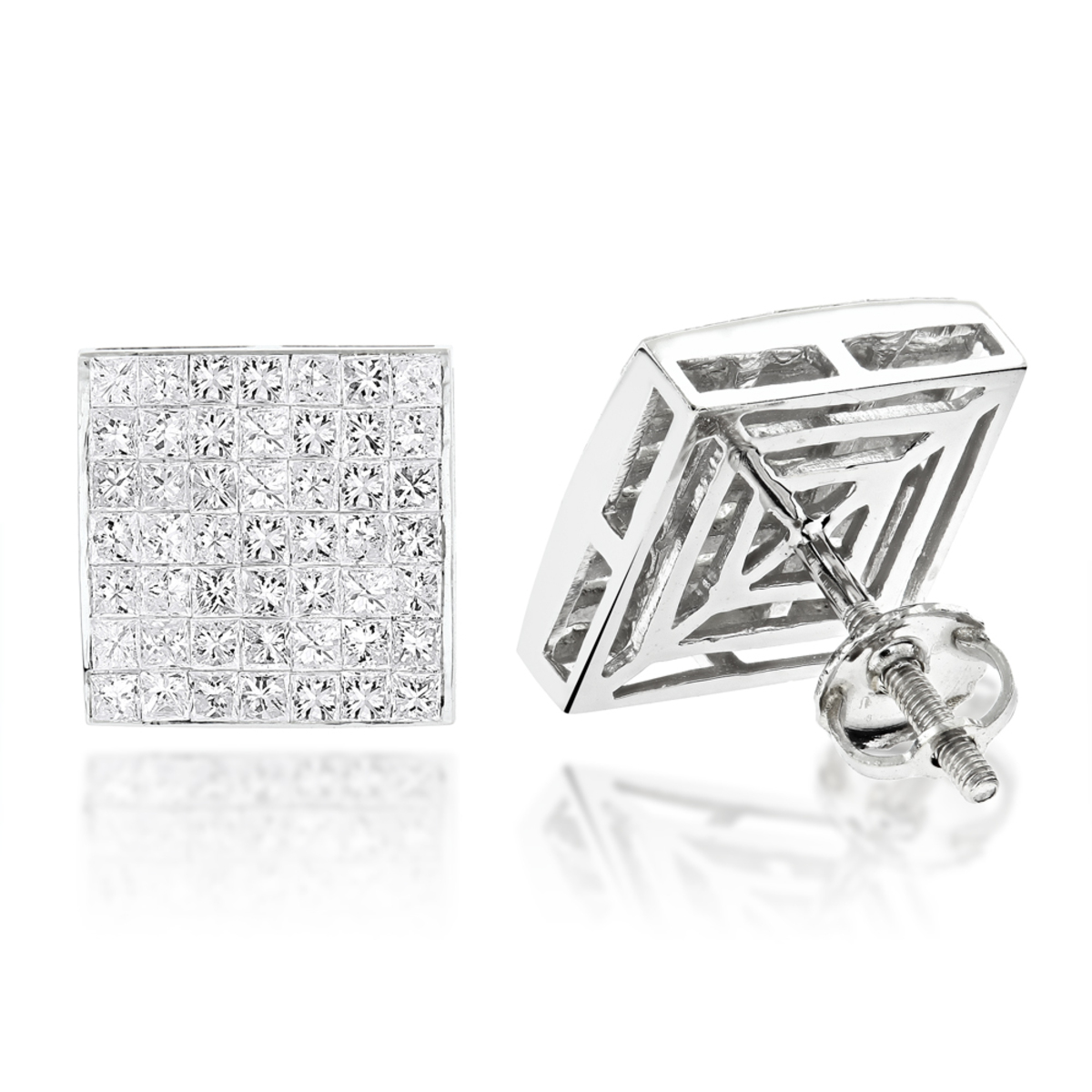 Invisible Cut Diamond Stud Earrings for Men and Women | 14K Gold | Screw Back | 3.05ct