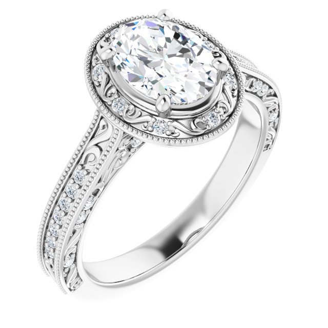 Iris Women's Oval and Round Natural Diamond Halo Engagement Ring | 14K Gold | 1ct