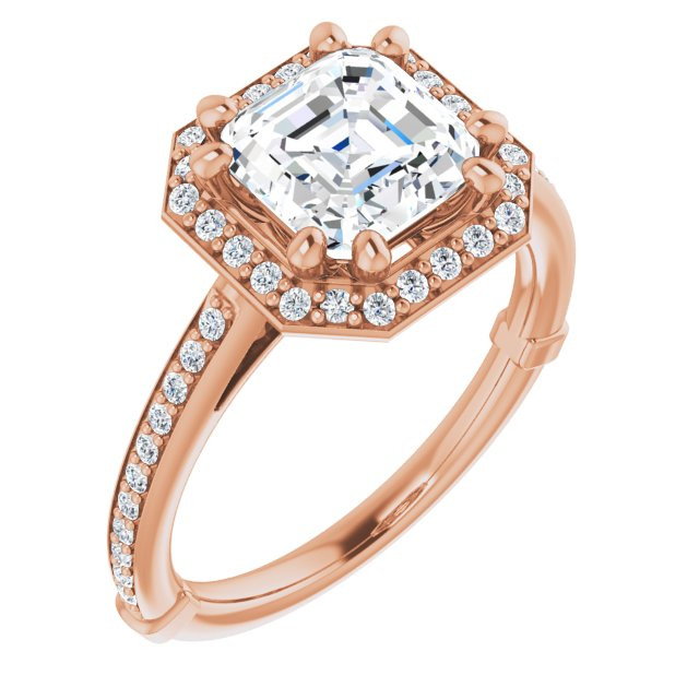 Isabella Women's 14K Gold Asscher and Round Cut Lab-Grown Diamond Engagement Ring | Prong Pinpoint Set | 2ct